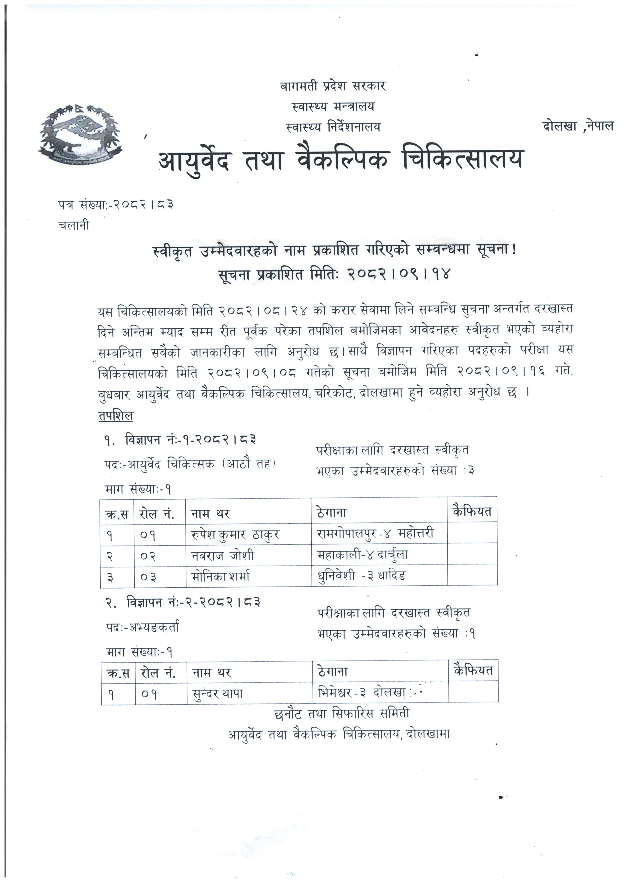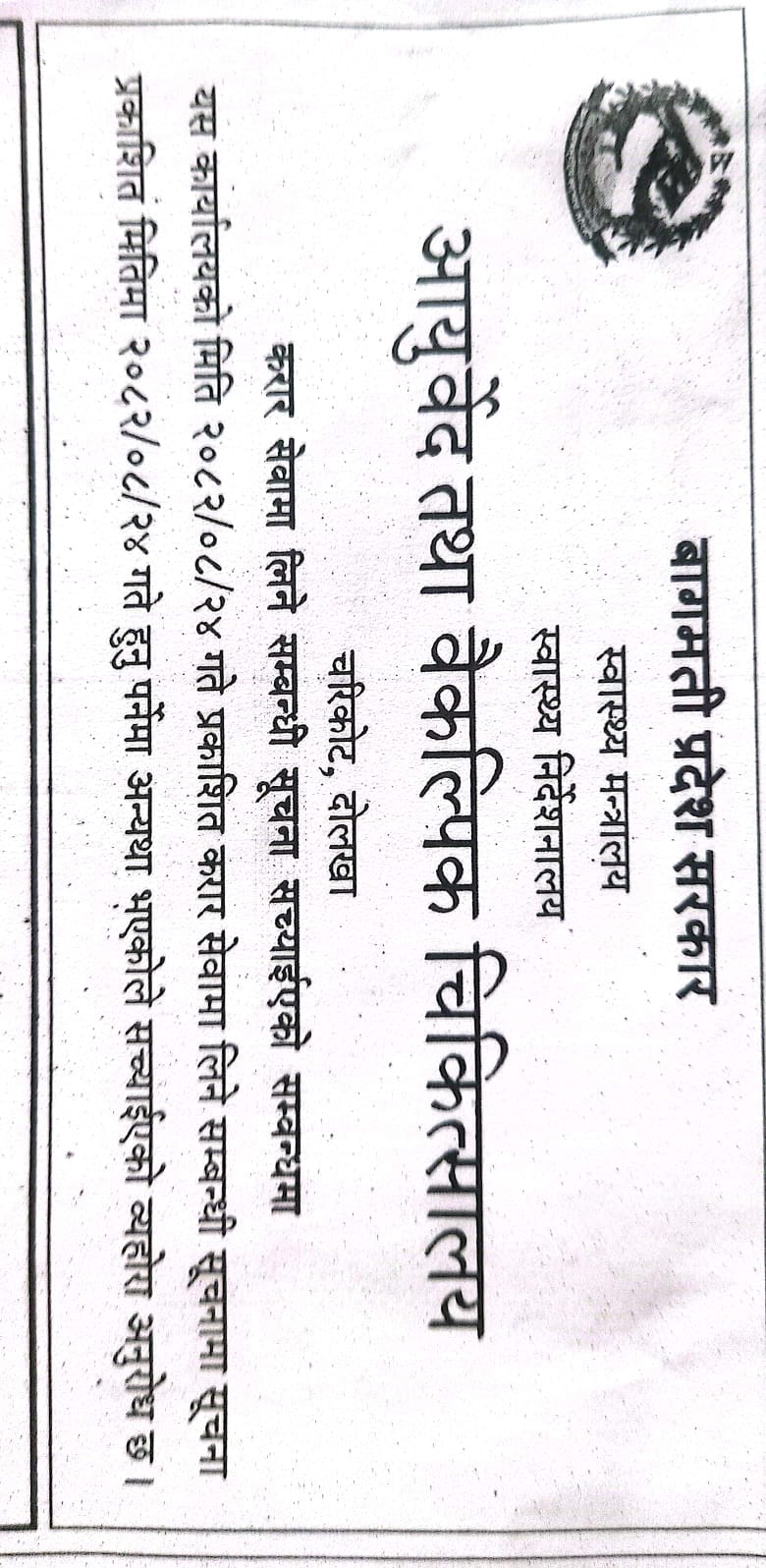 रहेको आयुर्वेद तथा वैकल्पिक चिकित्सालय, दोलखा आयुर्वेद