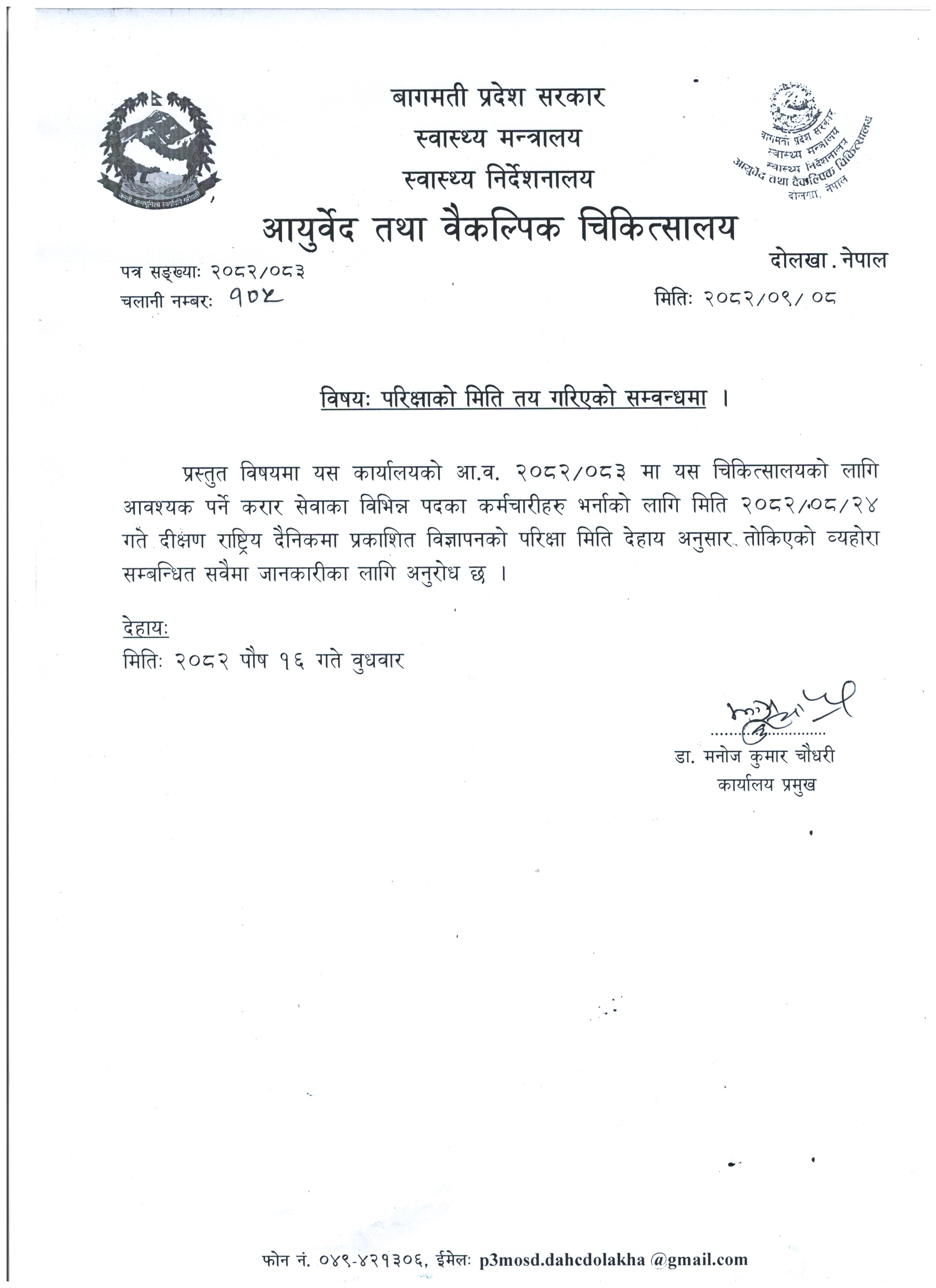 सेवा प्रदान गर्ने स्वास्थ्य संस्था हो। यो कार्यालय भीमेश्वर नगरपालिका वडा नं